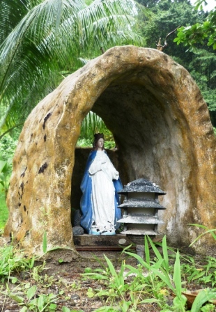 Una luz fotovoltaica le recuerda a la Virgen que la isla también la necesita para cuidar tanta exuberancia. En su interior hay ríos, cascadas, cavernas naturales y hechas por buscadores de tesoros, ...hasta un bosque nuboso