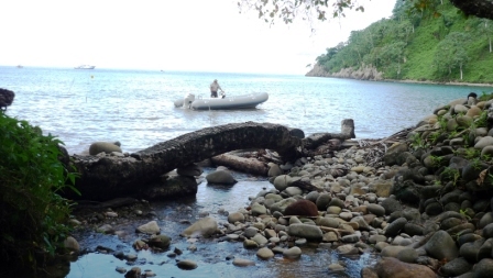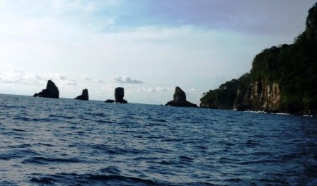 Unas AK-47 acompañaban a dos celosos Guardacostas, serios, jóvenes y novatos, que hasta "Los Mohais" (formaciones rocosas cercanos a la Isla del Coco, que recuerdan las esculturas del la Isla de Pascua) eran sujetos de minuciosa prospección.