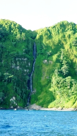 Circundar la isla con clima soleado muestra fantásticas vistas, pero con un buen aguacero permite comprender porqué los piratas le llamaron Isla del Coco, parece un coco, "está llena de agua por dentro", el 98% de los bordes de sus 24 Km2, son acantilados hasta de 100 metros de altos, de los cuales caen más de 2000 cascadas directas al mar en momentos de lluvia, por eso la comparan con un vaso desbordante de cerveza.