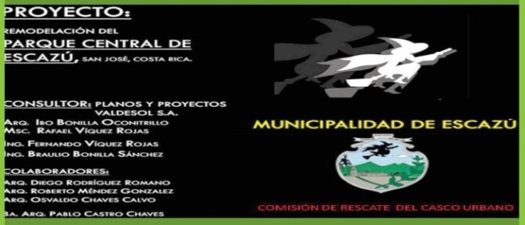 En esencia, este anteproyecto es el resultado de un esfuerzo conjunto entre un grupo interdisciplinario coordinado por la Empresa Consultora Planos y Proyectos Valdesol S. A. y la Municipalidad de Escazú, con especial y activa participación del Consejo, el Alcalde, Delegados Distritales, Procesos de Desarrollo Urbano y de Proveeduría, así como la Comisión de Rescate del Casco Urbano, quien coordinó, recopiló y procesó las inquietudes ciudadanas y dio seguimiento a todo un trabajo de aproximación sucesiva para plasmar los objetivos, especialmente los concretados en la encuesta de opinión pública denominada “Visión ciudadana para la remodelación del Parque Central de Escazú”.
