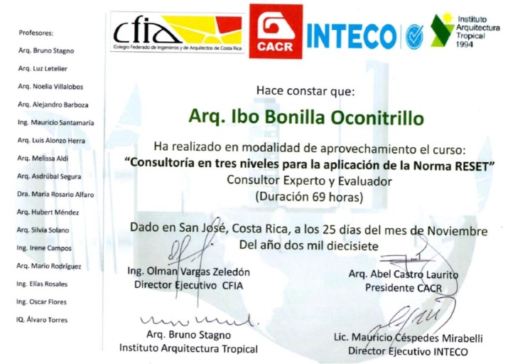 .........Ver abajo el Certificado Evaluador y Perito Experto en Norma RESET