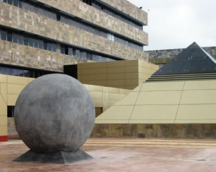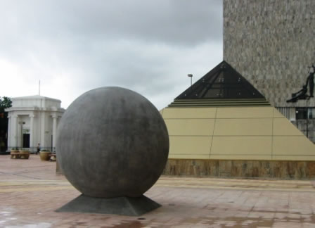 Cada una de estas figuras geométricas, tienen fuertes connotaciones icónicas en la cultura occidental, punto que se aprovechó para crear un conjunto escultórico usando construcciones con volúmenes limpios y significativos